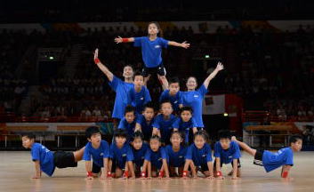 2015年7月12日~18日までフィンランド・ヘルシンキで行われた第15回世界体操祭に参加しました。約53ヶ国から2万人が参加し、演技発表やワークショップなどのイベントを通じて国際交流しました。げんきクラブからは、有志による16名と日本から参加した2名を含む18名で演技発表を行いました。約5,000人の観客の前で堂々の演技!演技中には沢山の拍子をもらい、練習の成果を十分に発揮することができました。